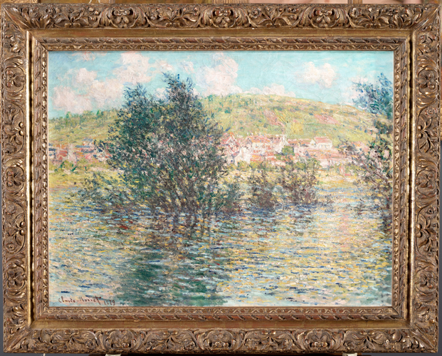 As in other paintings, Monet here seems to come close to Vuillard and Bonnard who would treat these same subjects a few years later. The "close up" of the top half of the wicker tea trolley, contrasting with the female figure in the background on the right, also recalls certain techniques favoured by the Nabis.